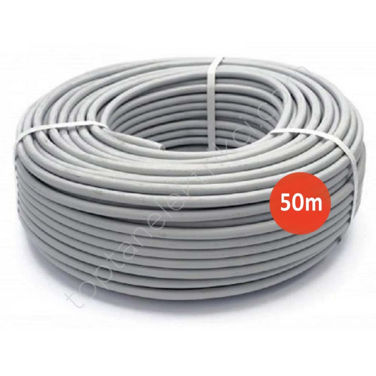 Bakır enerji kablosu. Gri renkli. 50 metre uzunluğundadır. 3x2,5 mm ebadındadır. Faz kabloları içinde tek kalın tel, monotel vardır.