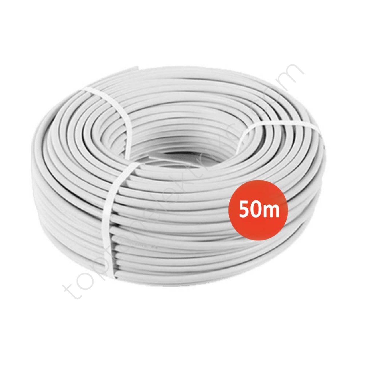 Bakır enerji kablosu. Beyaz ve siyah kablo rengi vardır. 50 metre uzunluğundadır. 2x1,5 mm ebadındadır. 2 faz kablosundan her biri içinde 27 tel vardır.
