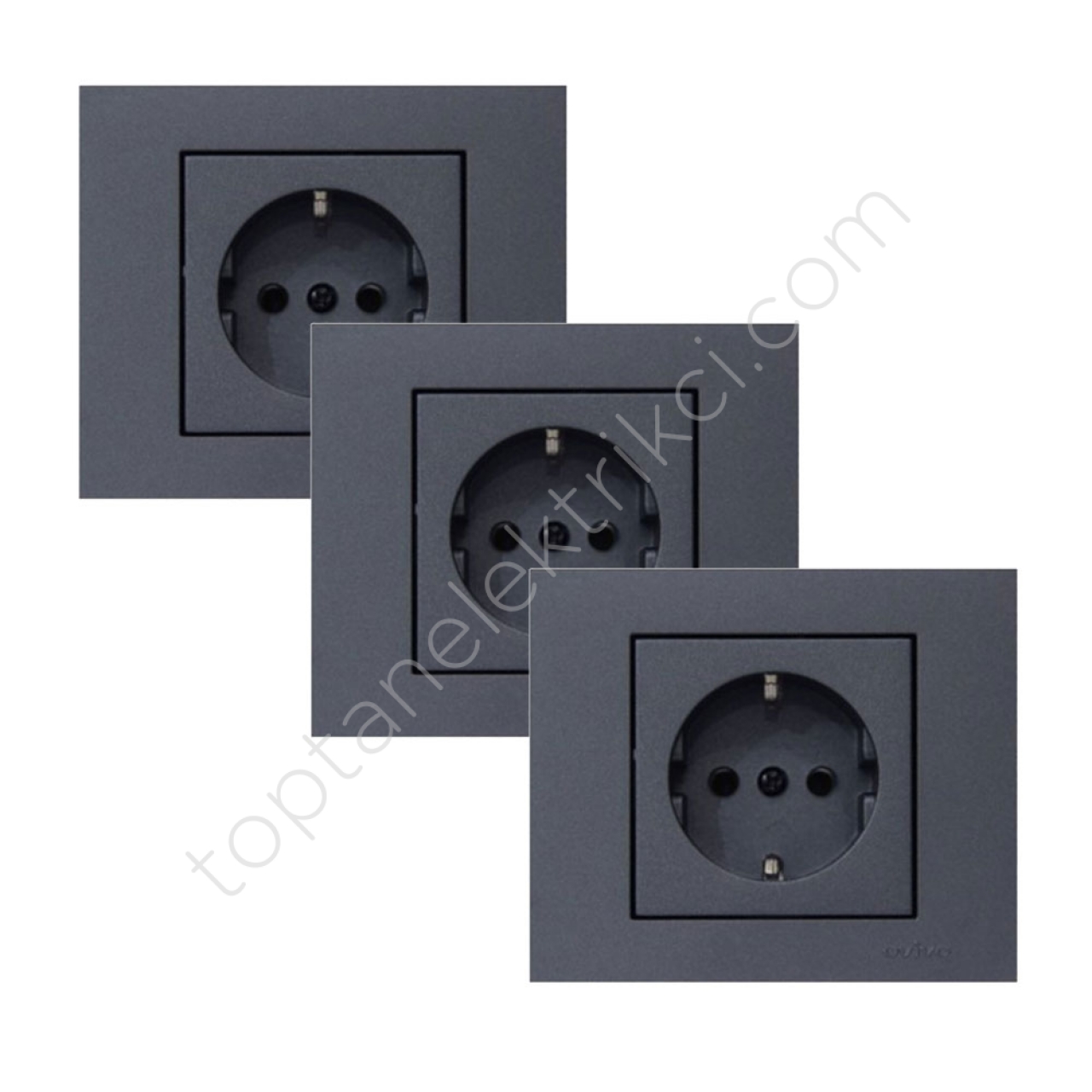 Ovivo Grano metalik füme topraklı priz. 3 adet bir arada satılır. Çerçeveleri dahildir. Standartlara uygun TSE belgelidir.