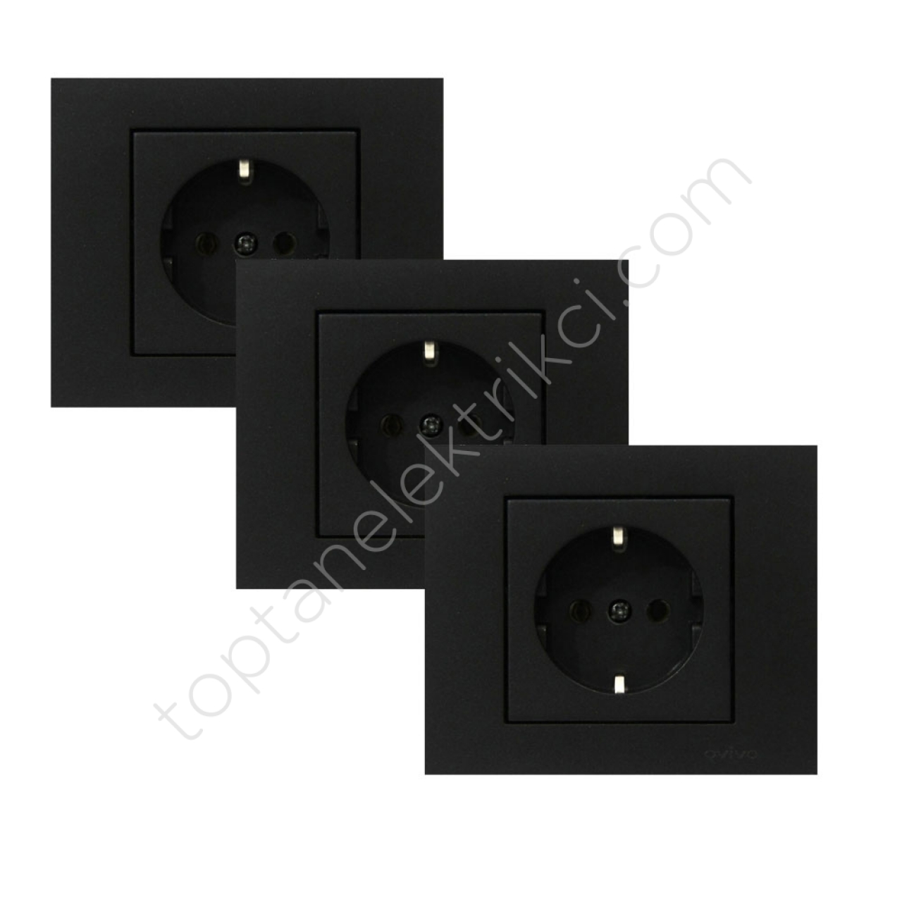 Ovivo Grano siyah topraklı priz. 3 adet bir arada satılır. Çerçeveleri dahildir. Standartlara uygun TSE belgelidir.