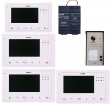 PratikKart villa tipi görüntülü diafon sistemi. 1 Daire içindir. 1 adet monitör, 1 adet güç kaynağı ve 4 adet kartlı geçişli zil panelinden oluşur.