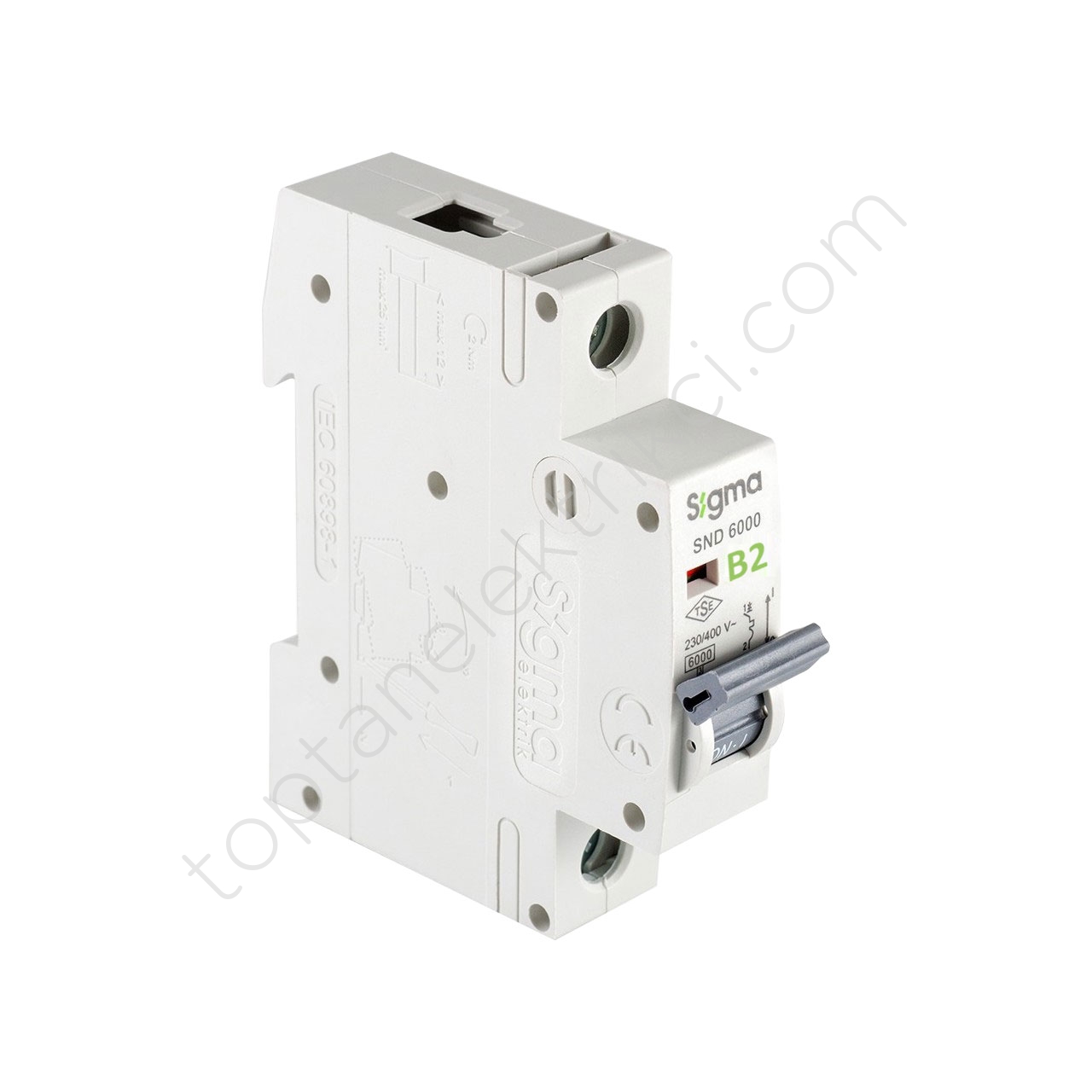 Sigma 6SM102B B Tipi otomatik sigorta. 2 AMPER. TS 5018‑1 / EN 60898‑1 standartlarına ve CE normlarına uygun üretilir. B tipi sigortalar nominal akımın 3‑5 katı kadar manyetik açma yapar, termik açma ise ~1,13‑1,45 × nominal akımda çalışır. Sadece faz hattını korur (genellikle tek faz sistemlerde kullanılır). 6 kA, onun en fazla 6000 A kısa devre akımına dayanabileceğini ve bu durumda güvenli biçimde açılacağını gösterir.